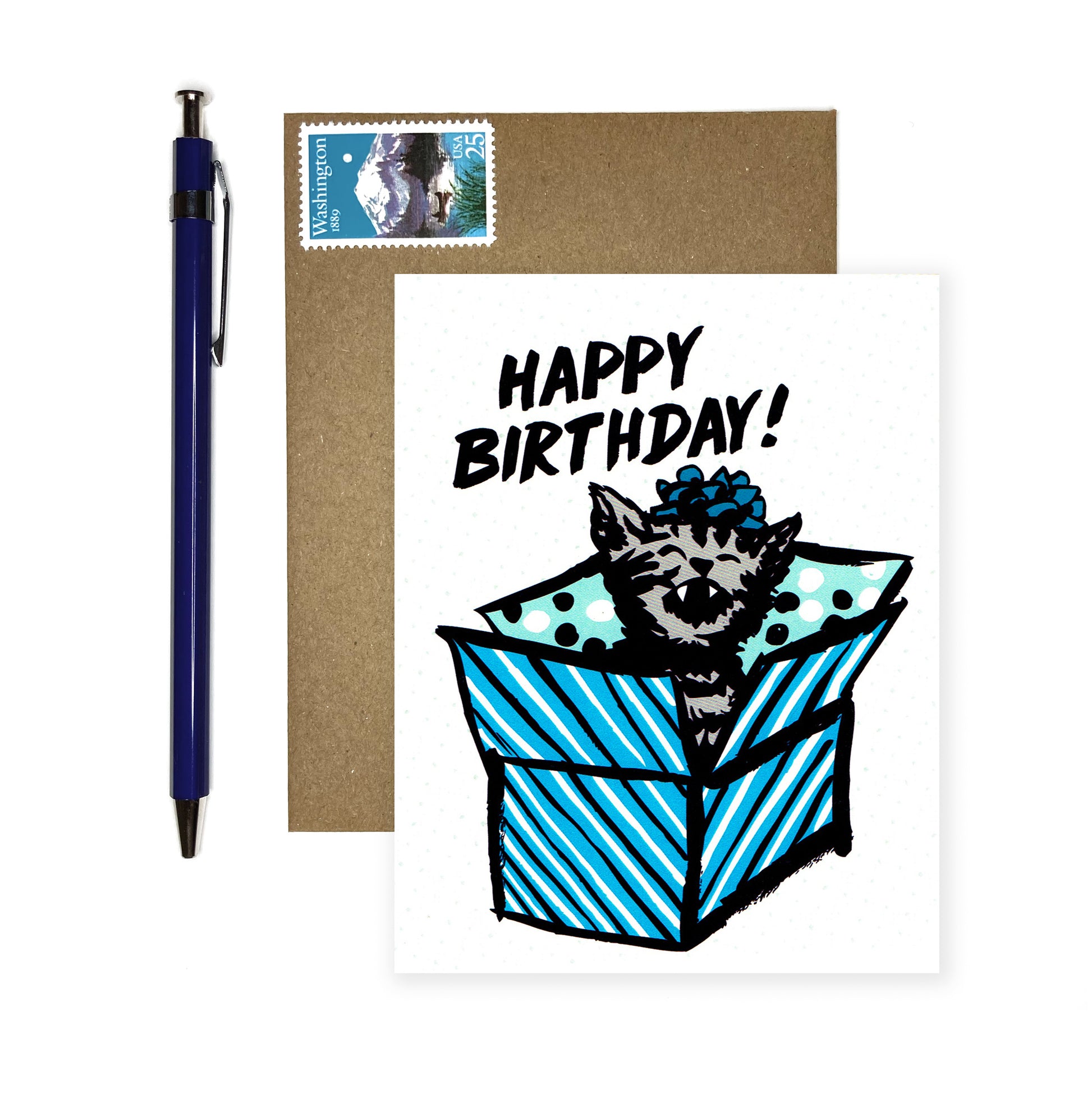 Card: 5.5 x 4.25 inches folded, 100 lb white stock made from 100% recycled from post-consumer content.