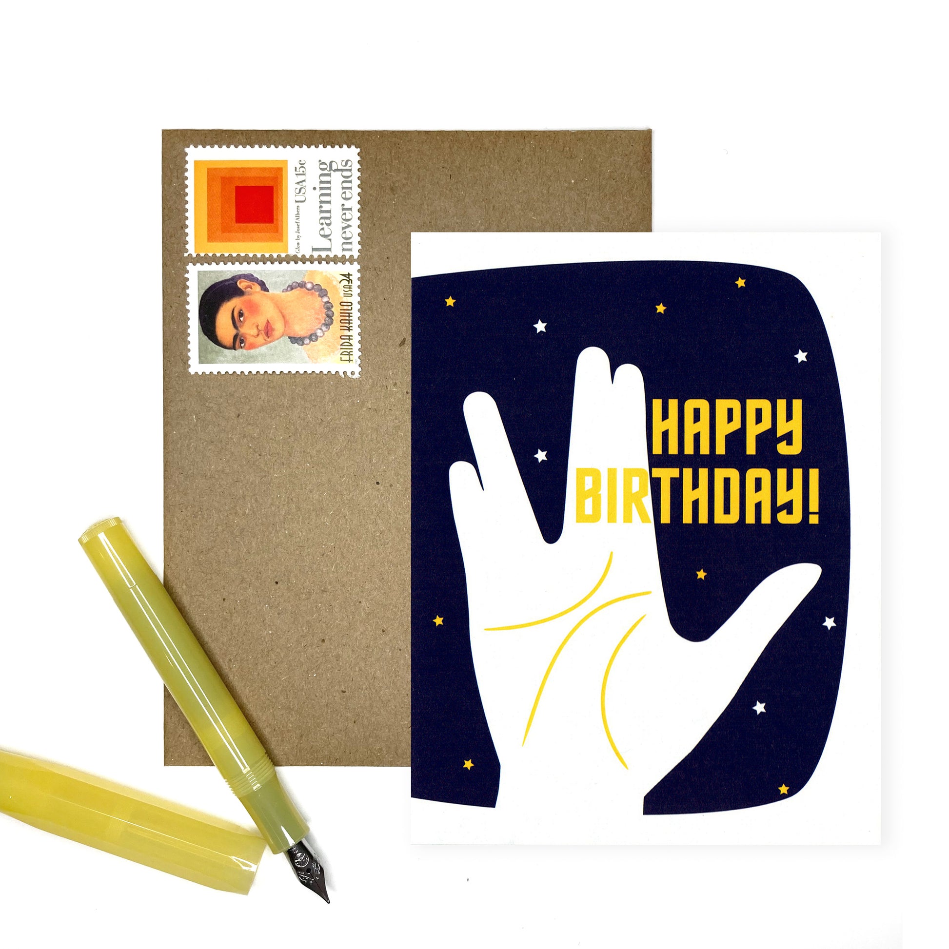 Live Long and Prosper -- Star Trek Inspired Screenprinted Birthday Card