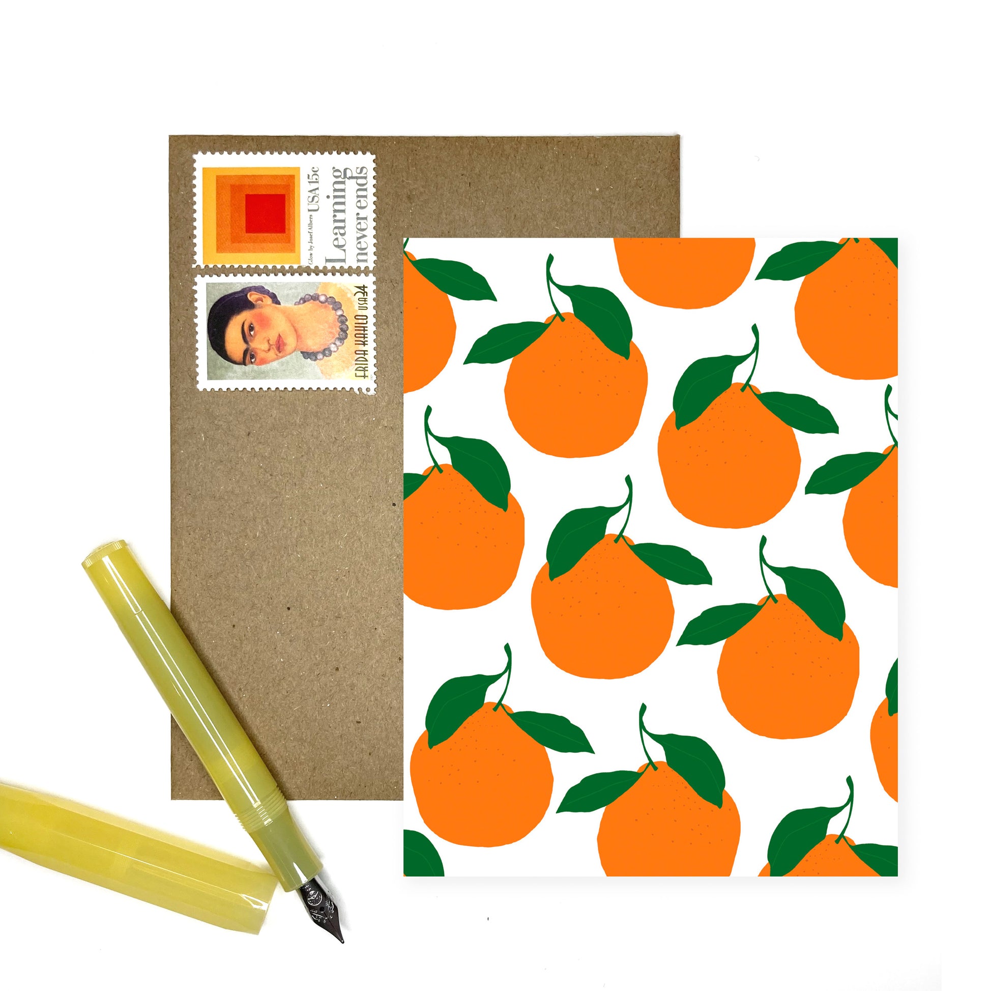Oranges are a symbol of good luck and prosperity. We love having these cards on hand for thank yous. But they'd also be great for birthdays, retirement, and the new year.