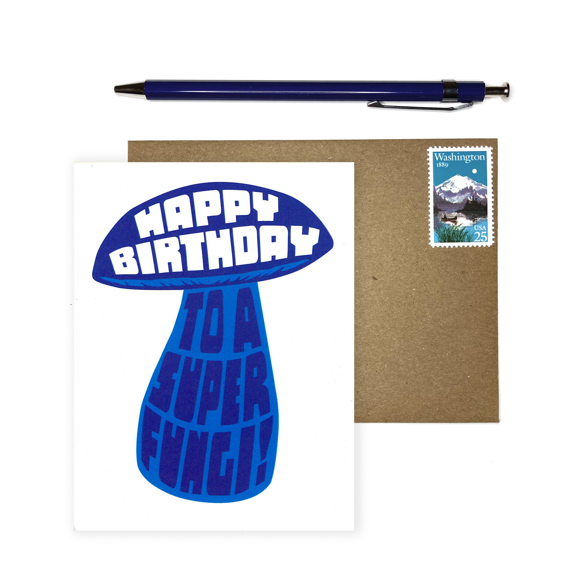 Celebrate your favorite “Fungi” with this funny mushroom birthday card.