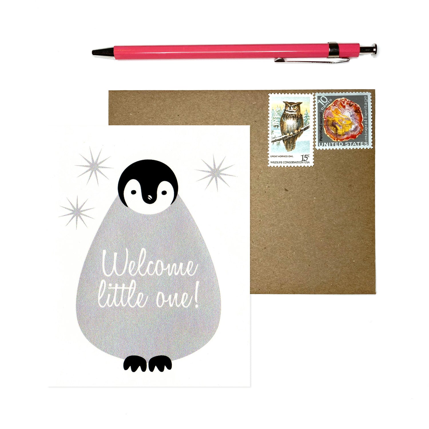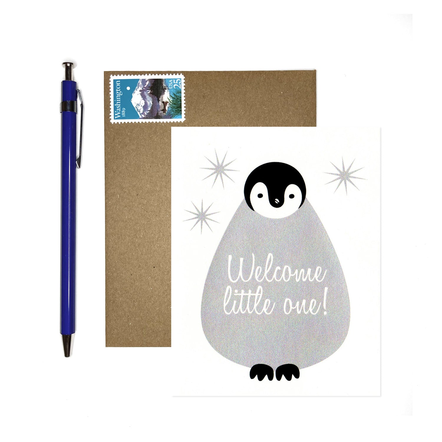 Welcome Little One -- Baby Penguin New Baby Screenprinted Card