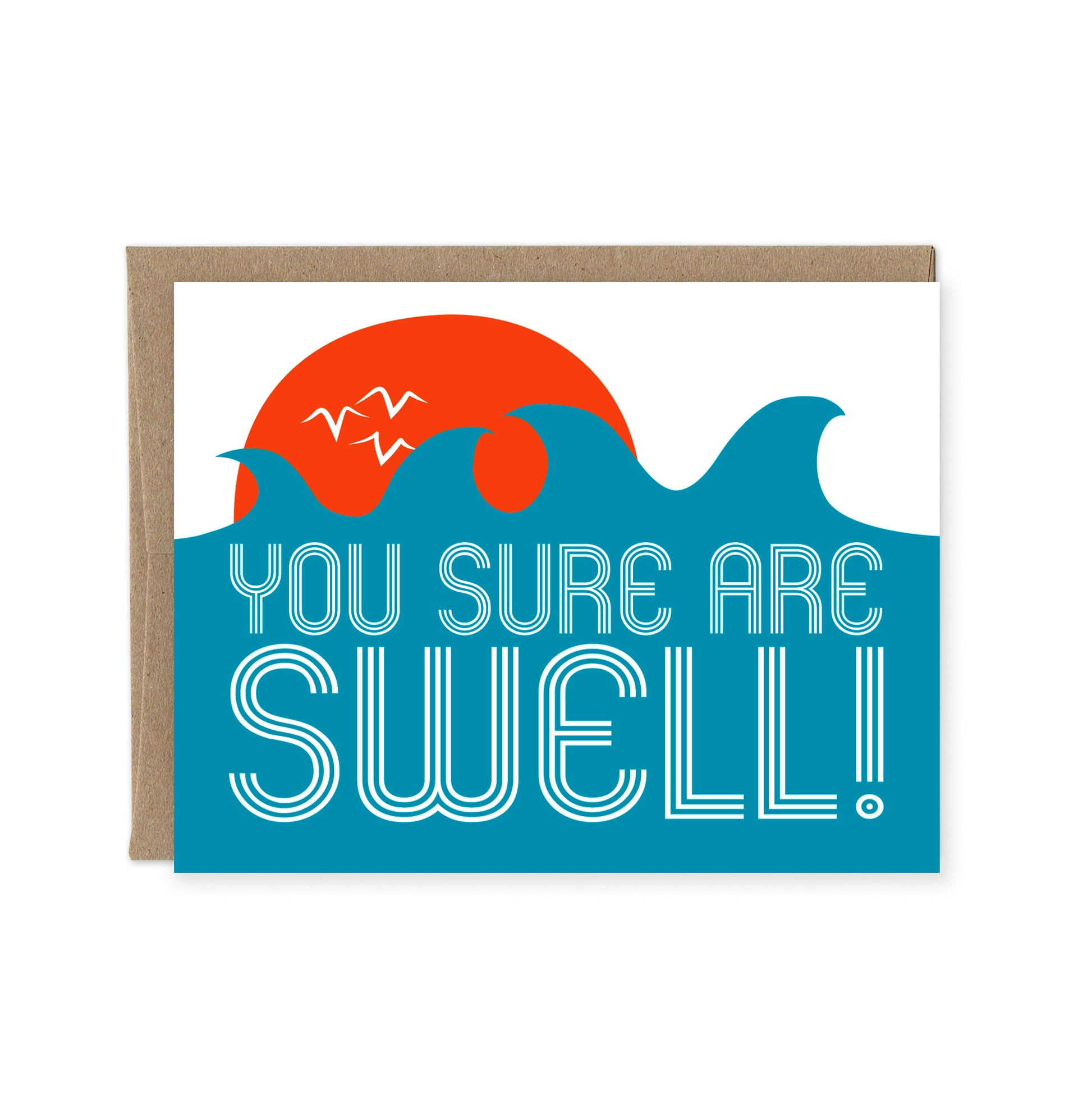 "You Sure Are Swell" is a vibrant card featuring a stylized turquoise ocean swell and a glowing orange sun. This card can be used in so many occasions but some of my favorite would be to thank a friend, wish your mum a very happy mother's day, wish your dad a happy father's day, or to brighten the day of a sibling.
